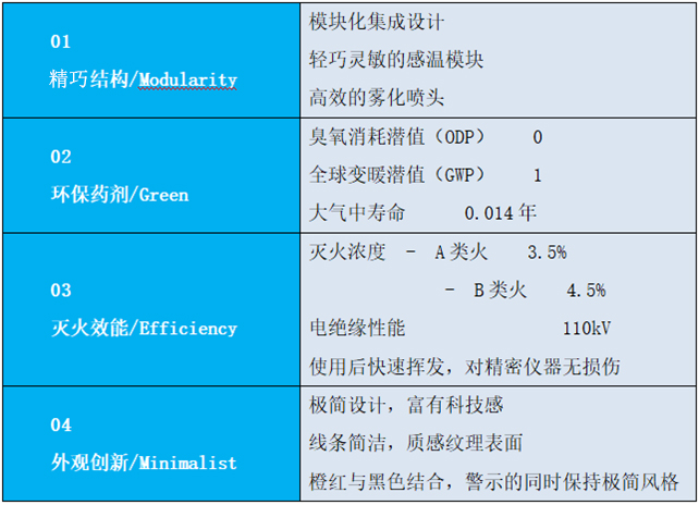 本產(chǎn)品是一種應(yīng)用于小型封閉空間如配電柜、電表箱、網(wǎng)絡(luò)服務(wù)器、新能源電池倉(cāng)、充電樁、電梯控制柜等火災(zāi)防護(hù)的新型自動(dòng)滅火裝置。