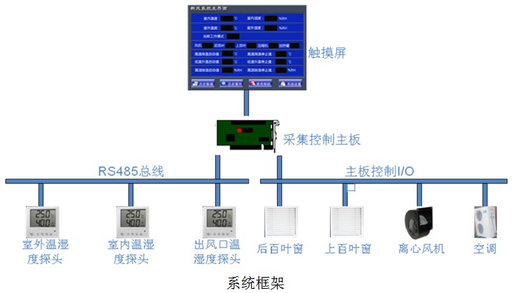 當(dāng)室外溫度低于室內(nèi)設(shè)定值,控制器開啟新風(fēng)機(jī)引入室外新風(fēng),同時關(guān)閉室內(nèi)空調(diào)達(dá)到節(jié)能效果。